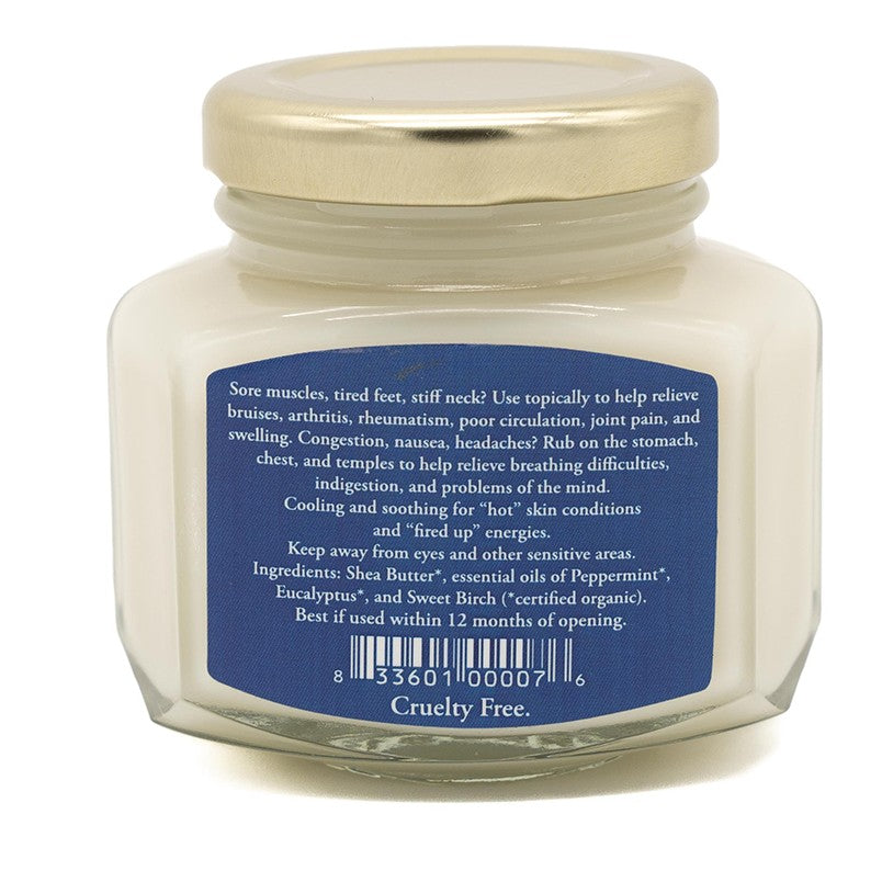 Shea Butter*, essential oils of Eucalyptus*, Peppermint*, Sweet Birch (*certified organic)